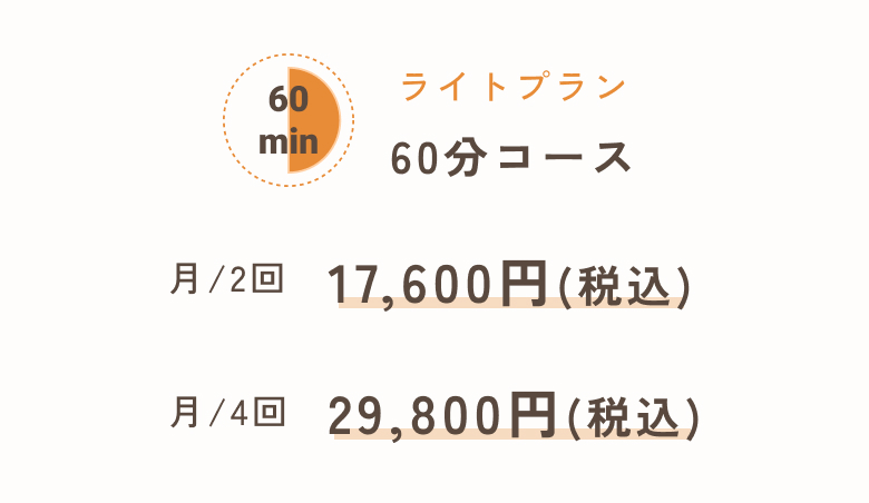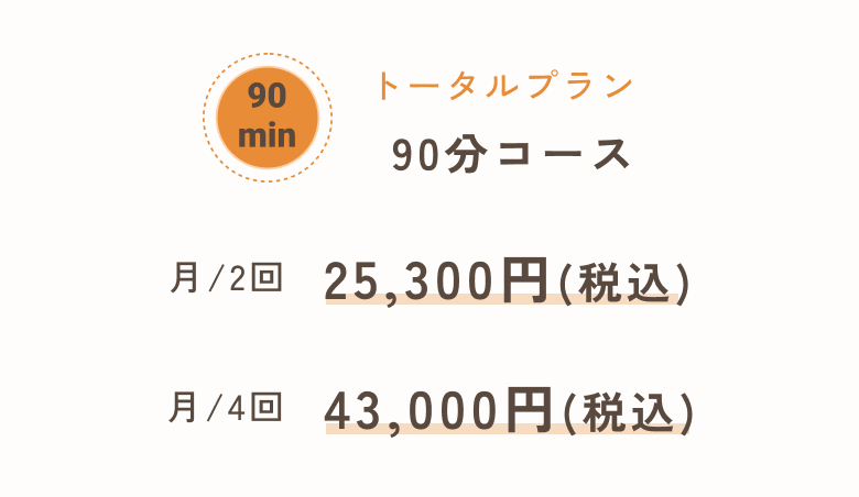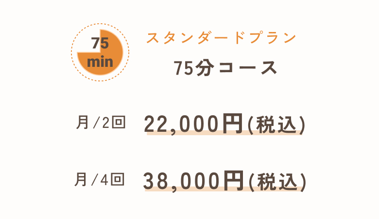 カウンセリング・着替え・セッション・手続きを含む時間です。